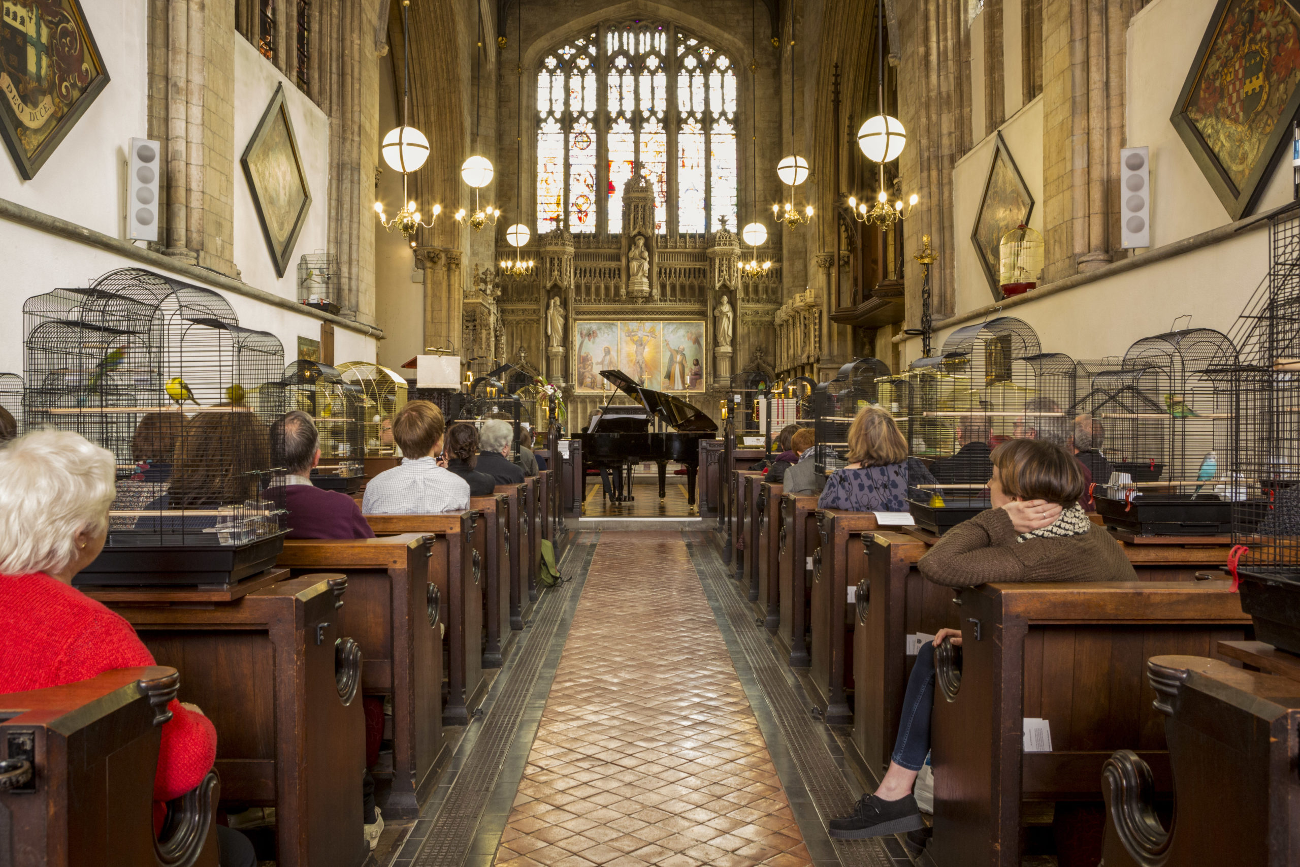 Staged in one of Bristol’s oldest and most intimate chapels, the installation featured over 70 songbirds listening to hourly performances of the recital. Chance harmonies and discords between piano and bird unfolded as melody and twitters intertwined.
