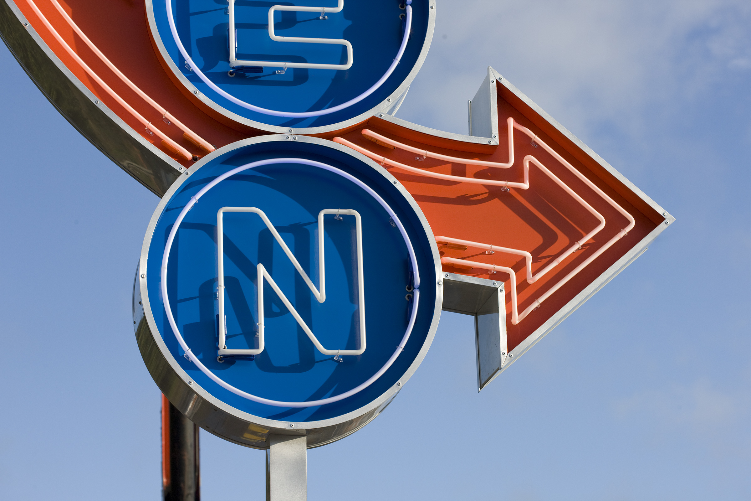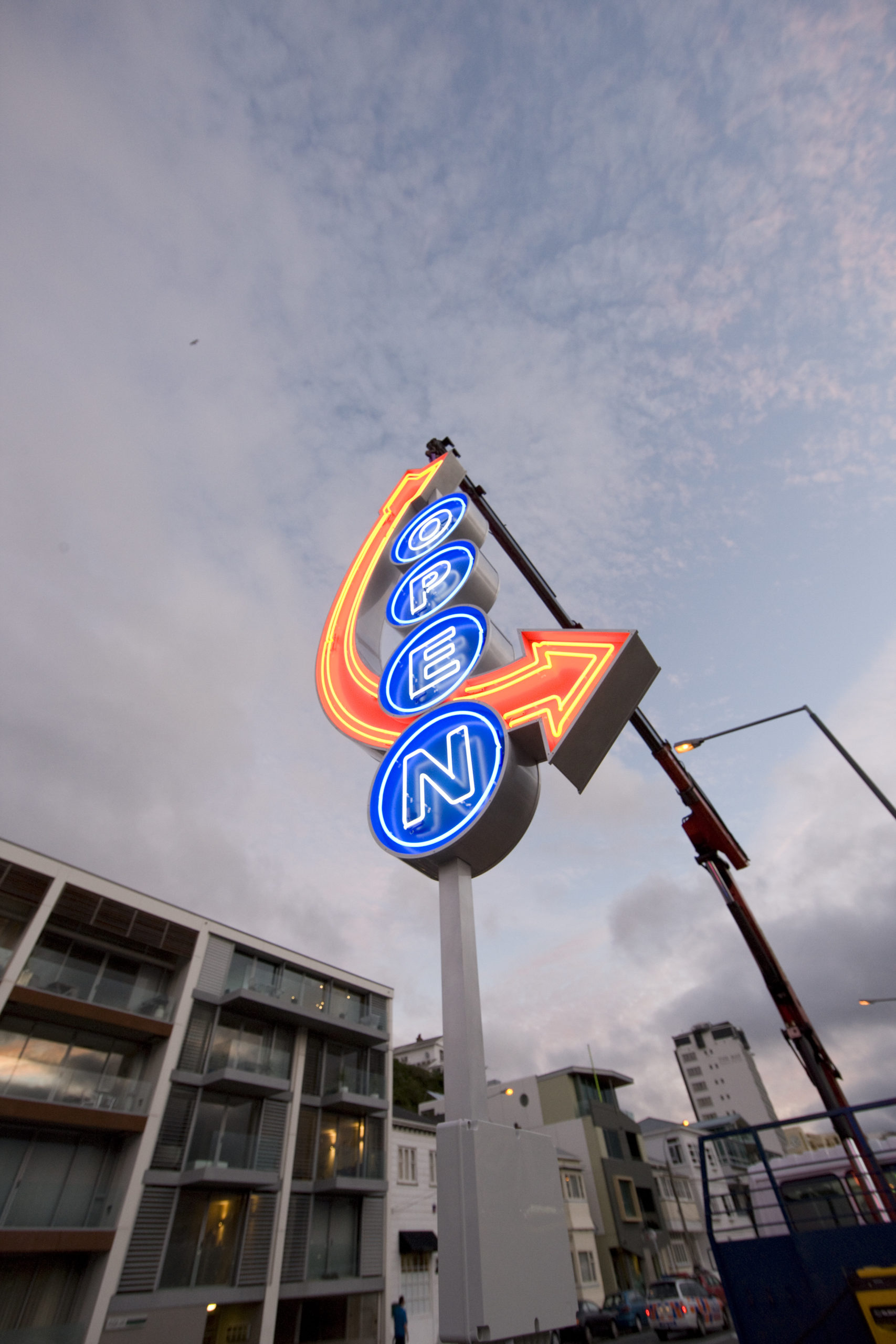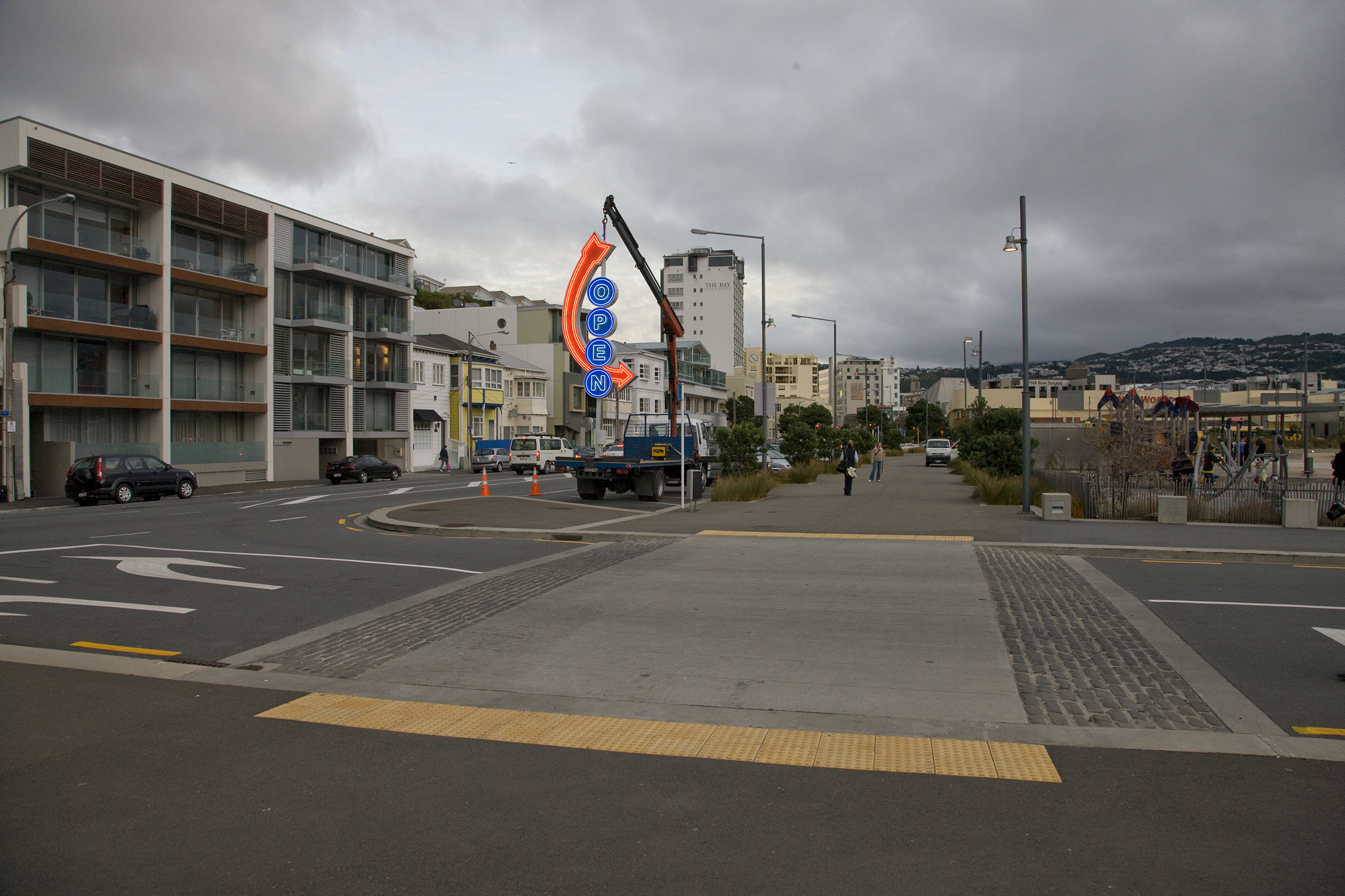 Conceived as an elusive finale for the One Day Sculpture series, Michael Parekowhai mounted a 4.6 metre-high neon sign on the back of a truck that spelled out the word ‘OPEN’ and toured it around the city. Displaying a unique blend of wit and seductive sculptural object making, Yes We Are played with the idea of contextual ‘displacement’, reflecting the nature of the One Day Sculpture series itself by embracing the guise of an unprescribed and unexpected intervention. Part-retro, part-Vegas, the sign accrued different meanings as it travelled from place to place across the day: