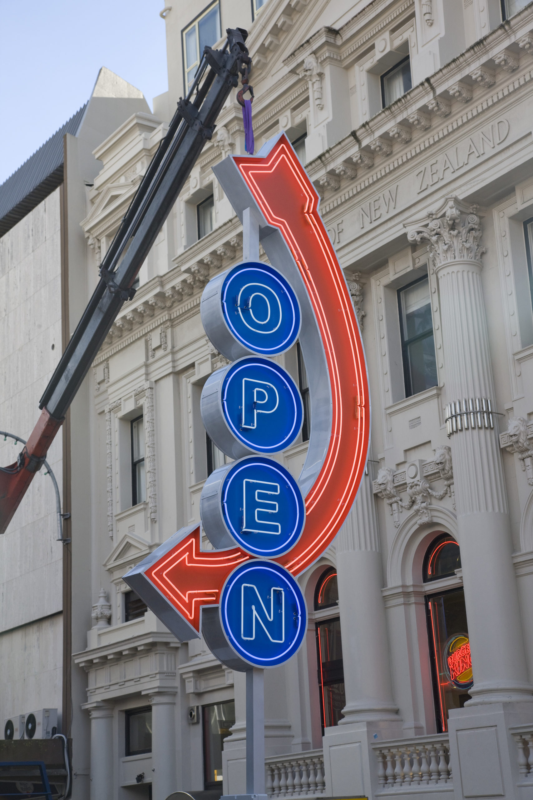 By not allowing audiences to know a predetermined route for the work, but simply indicating where the work will start and finish, the artist coaxed us to think about the terms of which we encounter a work of art. Parekowhai was particularly interested in the potential of the term ‘open’ and what such a disembodied sign might indicate about the future of public art. The title of the artwork refers explicitly to the convention of signs on shop doors which substitute ‘Yes We Are’ for ‘Open’ – an assertive and optimistic response to a potential enquiry.
