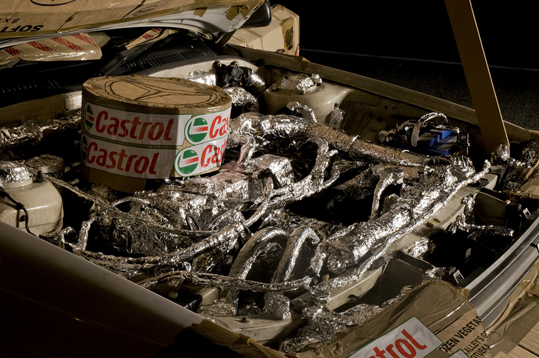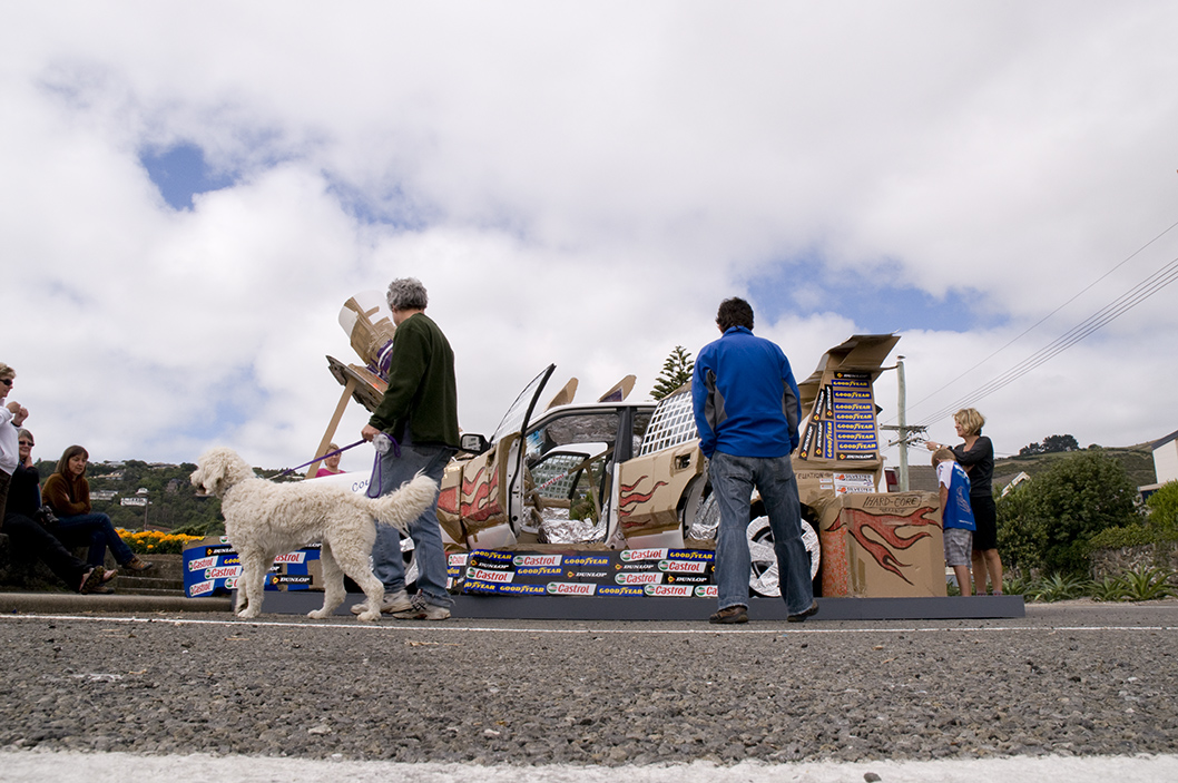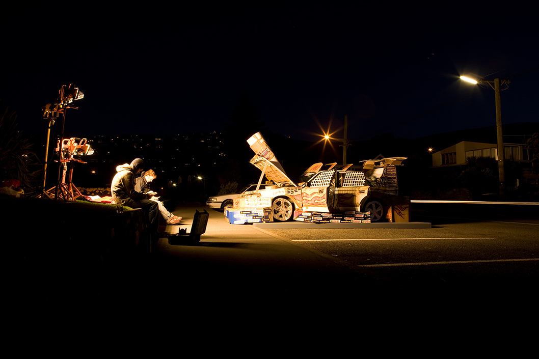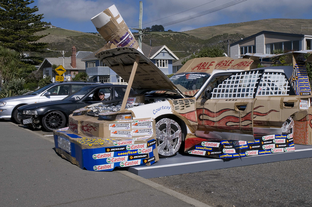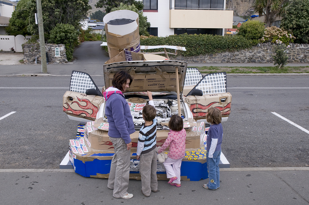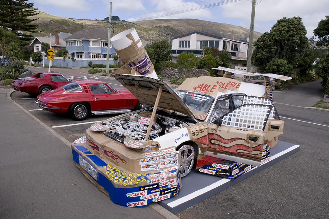 Appropriating the ‘non-exclusive’, ‘universal’ form of the car, Hirschhorn dramatically customised a standard sedan with a variety of cheap materials and placed it on The Esplanade that runs adjacent to the Christchurch beaches of Sumner and Scarborough. Hirschhorn’s remarkable sculpture existed for just 24 hours.